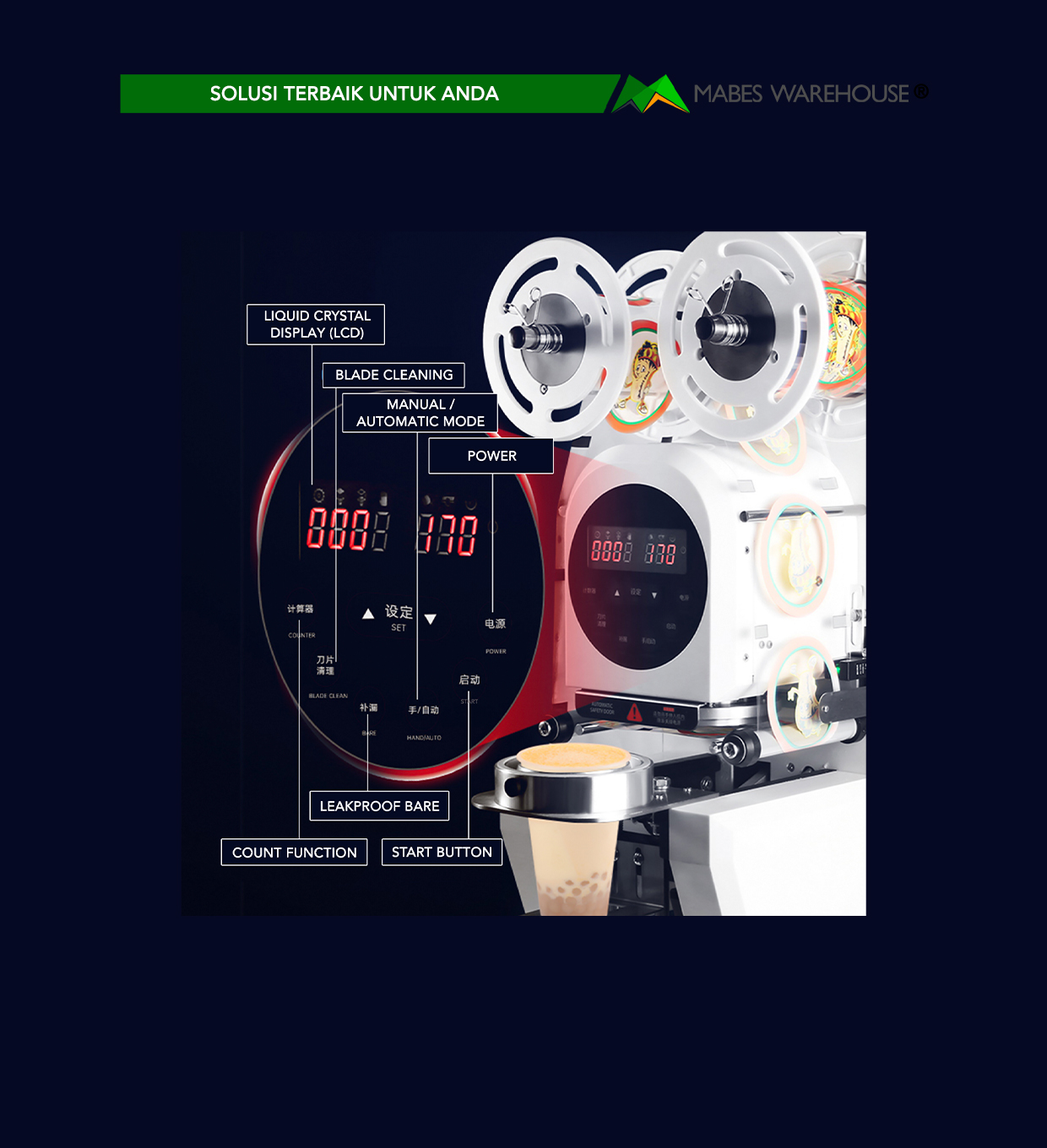 • Dibekali sistem perhitungan kuantitas cup otomatis, jadi kamu bisa menghitung berapa penyegelan setiap harinya.