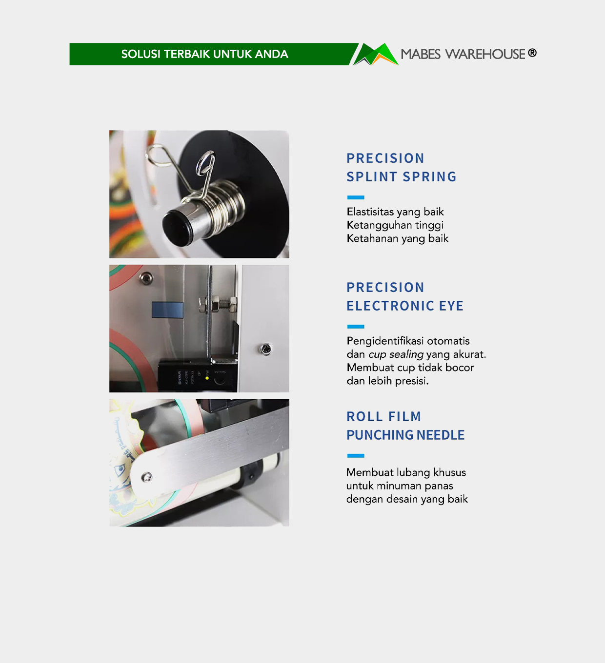 • Dapat juga re-seal cup sehingga bisa memakai plastik sebelumnya, tidak boros plastik.